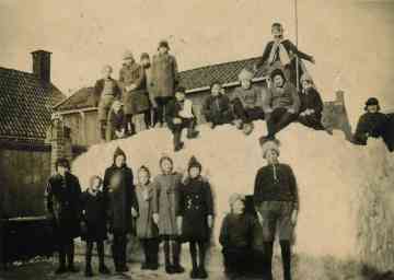 Foto van de jeugd met heel veel sneeuw bonifatiusschool 1942