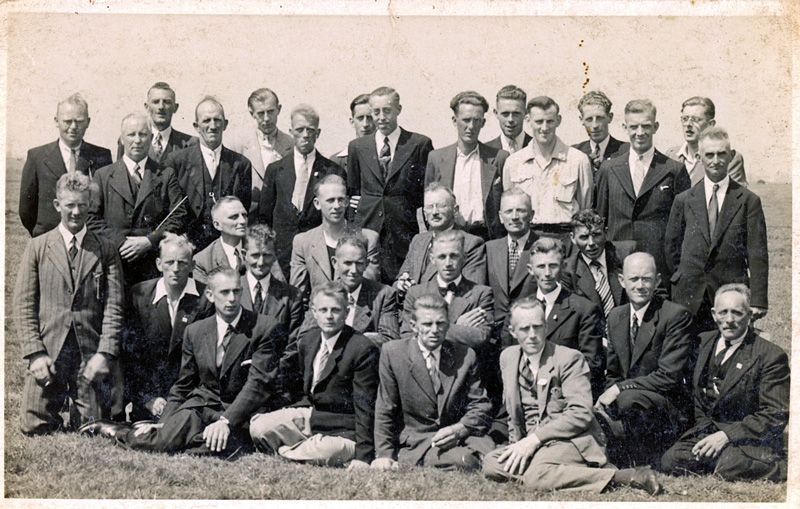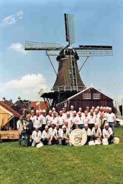 Het mannenkoor van Woudsend onder leiding van dirigent Hoekstra
